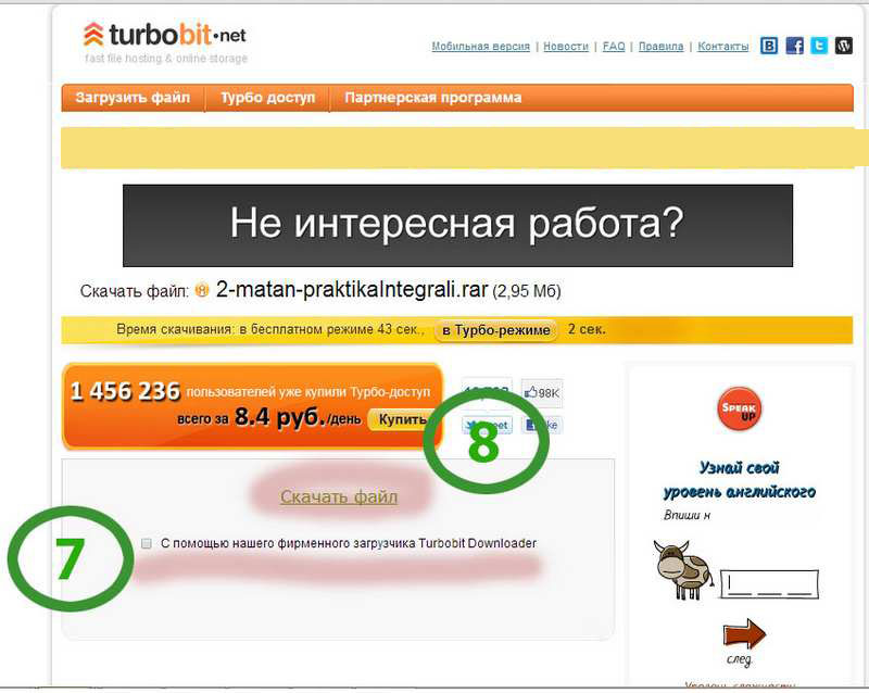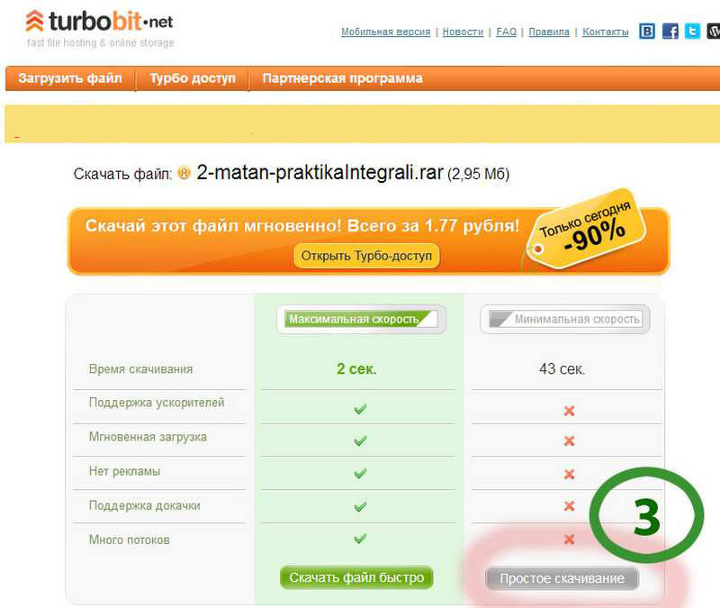В первую очередь пробуйте скачать с Турбобита. Ниже скриншоты и пошаговые действия.